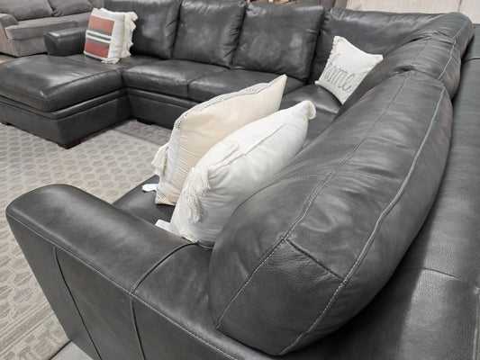 Greer Dark Grey Natural Leather 4 Piece 166" Modular U-Shaped Sectional With Left Arm Facing Chaise & Armless Sofa | Deep Seated.. 🚛 GET IT DELIVERED TODAY! 🚚